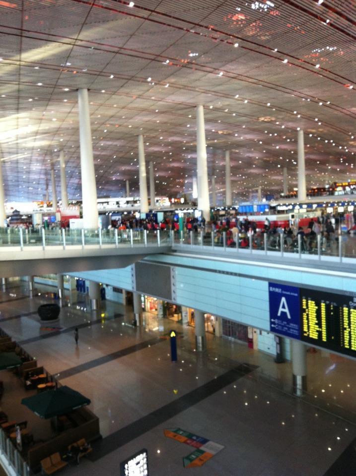 北京首都国際空港。中国では最大で、年間利用者数は、世界第2位を誇るとのこと。北京オリンピックに合わせて、新しい滑走路と第3ターミナルが整備された。