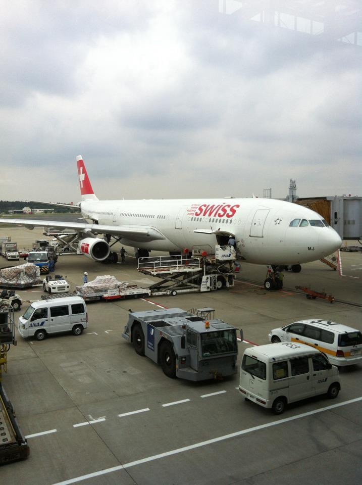 この度、ヨーロッパへのアクセスに選んだのは、スイスのナショナル・フラッグ・キャリアである、スイス国際航空。現在は、ドイツのナショナル・フラッグ・キャリアである、ルフトハンザ航空のグループに属している。白い機体に、スイス国旗同様の赤色のデザインがとてもクールである。