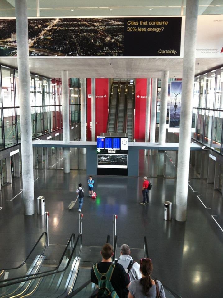 成田空港より到着、イミグレーションを通過後、ヨーロッパ域内への乗り継ぎ便ターミナルへ、ターミナル間を結ぶ電動列車のエアポート・シャトルで移動した。